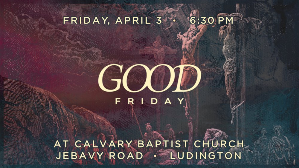 Friday, April 3 at 7pm at Calvary Baptist Church in Ludington (220 N. Jebavy Drive).